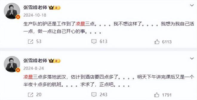第三次时,张雪峰终于注意到了网友的话。