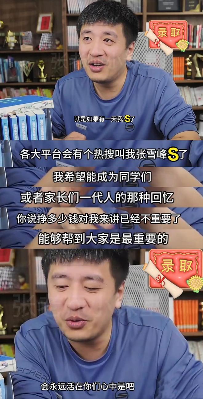 他曾在直播时说如果有一天他死了,各大平台会有个热搜叫“张雪峰死了”。他说他可能成为一代人的回忆,就像刘德华张学友一样,是一代人的回忆。