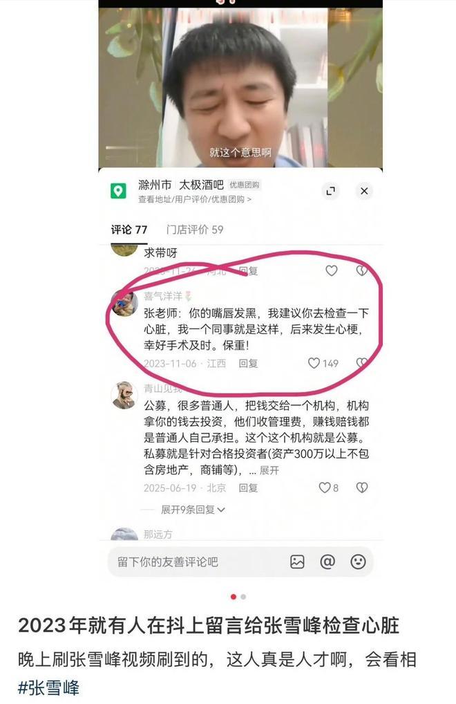 有一次张雪峰直播,有位网在直播间说张雪峰嘴唇发紫,可能心脏不好,让他去医院检查。