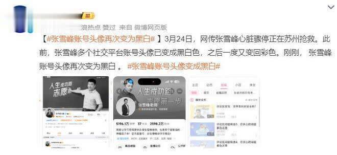 3月24日下午,网络疯传张雪峰因为心脏骤停正在苏州抢救的消息。
